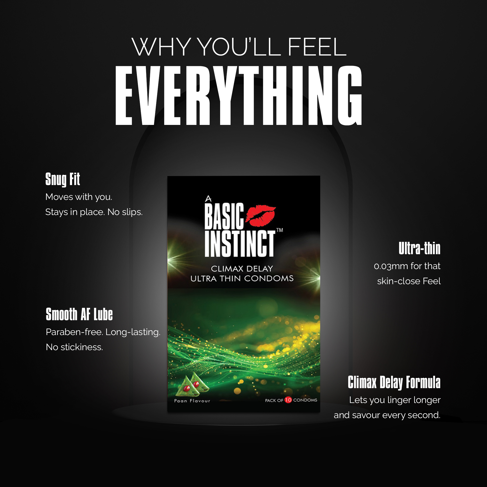 Infused with 4.5% Benzocaine to help delay climax and finished with a rich Paan flavour, these ultra-thin condoms are made for those who like to take their time—and taste every second of it.