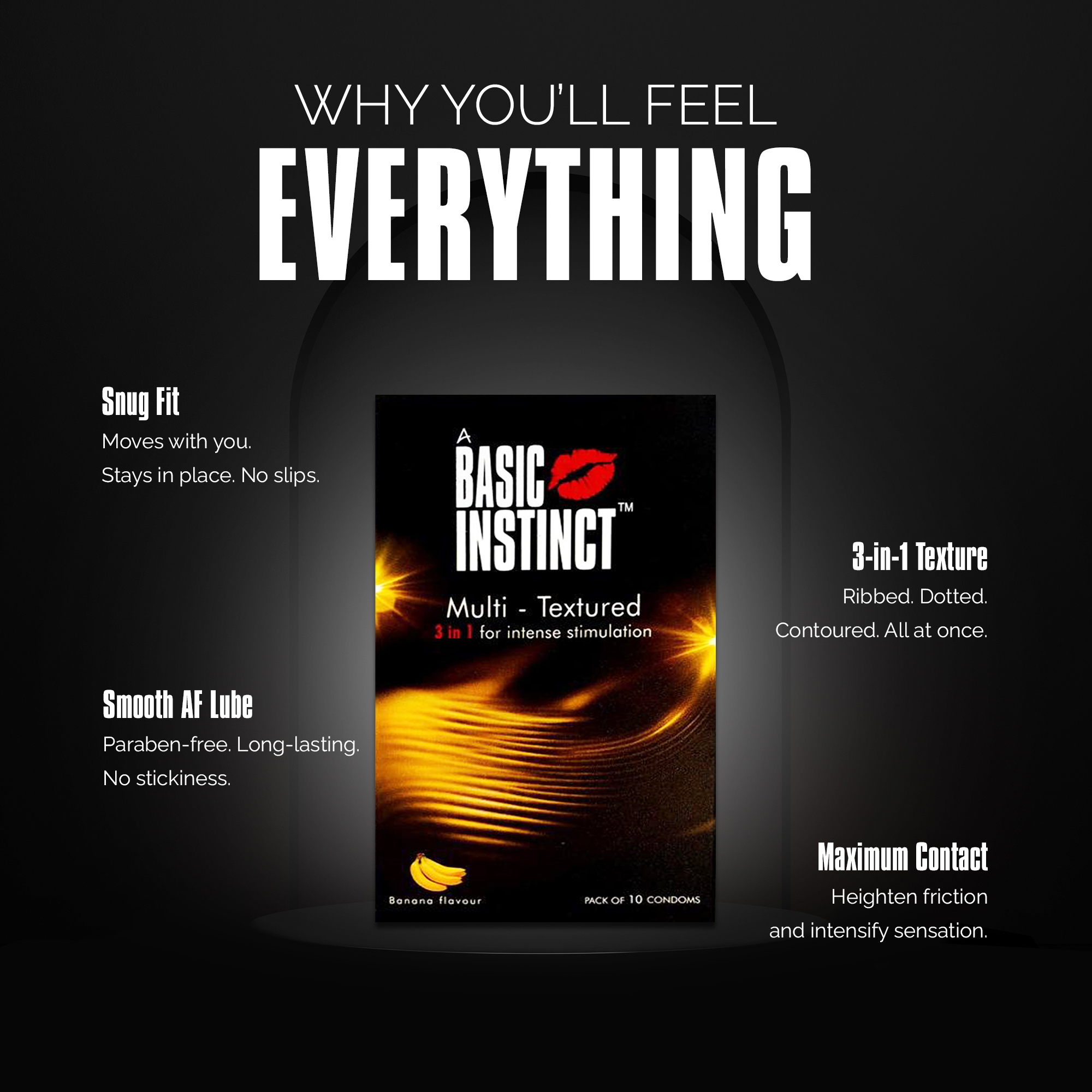 Basic Instinct’s Multi-Textured Condoms are designed for those who don’t just crave more— they expect it.
